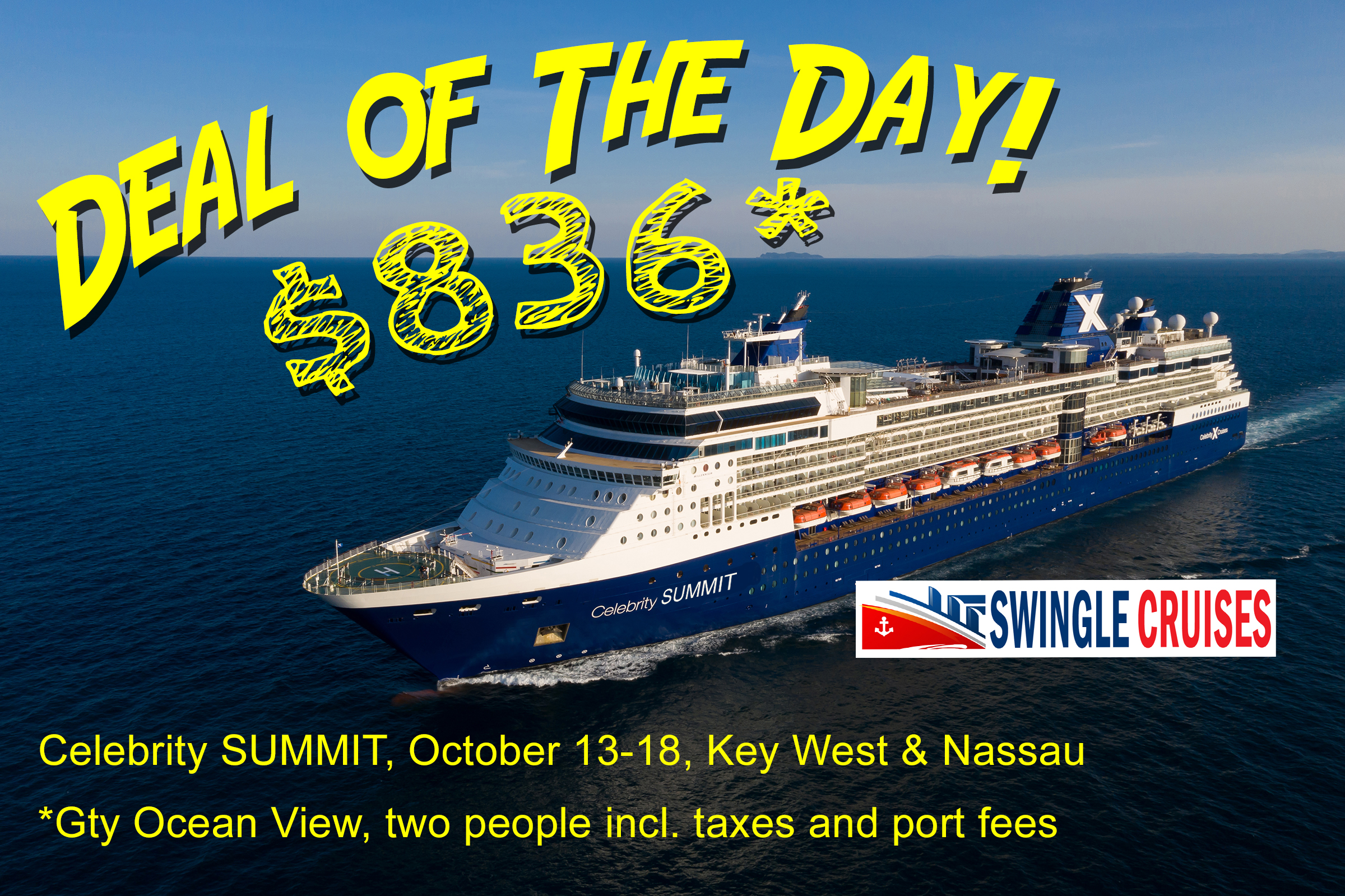 We have a few cabins left on our fall group cruise aboard Celebrity Summit. October 13-18, Ft. Lauderdale to Key West and Nassau. As of today, two can cruise for as low as $715 with the military discount. We are talking about a Celebrity cruise for under $1k!